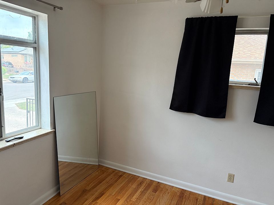 Private bedroom on main level in the home with shared bathroom, living room and kitchen. Bedroom has 2 windows and is a bright room. Room has nice hardwood floors and a large closet with sliding doors and shelving. The shared space is with 2 additional male roommates who are college students with part time jobs. Renter is responsible yo take trash out each week to the curb.