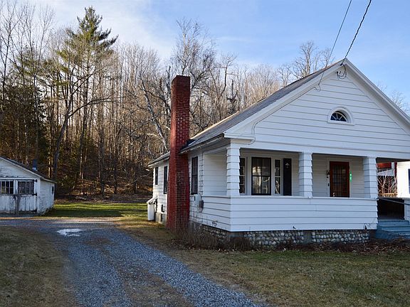 Set nicely back off South Main Street in the charming village of Danby is this c19401 story Bungalow. Graced by a generous village lot, (+/- .40 acres) with a large, flat private back yard and a spacious detached garage (2 bay with side bay for lawn tractor) this quiet village setting is special. The home offers a spacious eat-in kitchen with two pantry closets, a living room with brick fireplace, large front window and original wooden floors, a full bath and two bedrooms (one quite small). Amenities include small entry foyer with arched door frame, spacious full length porch with wainscotted ceiling and good, dry full (poured concrete) basement. Needs a bit of updating but very livable and solid - a truly charming little place and affordable at just $150,000.