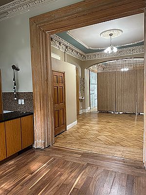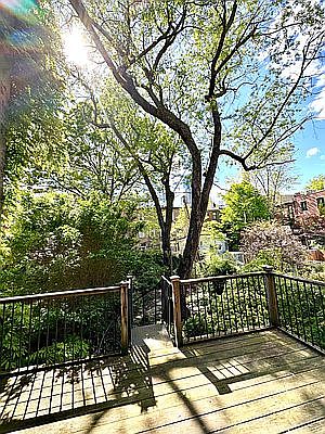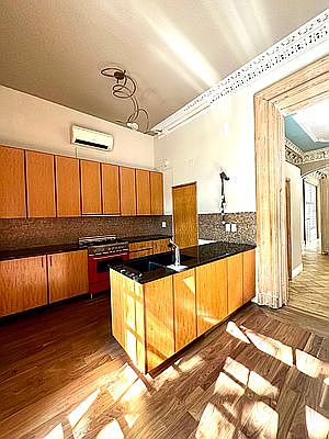 Introducing this majestic floor-through apartment, located in a historic multi-unit townhouse in Fort Greene, Brooklyn. Retaining much of its original ornamentation, this apartment exudes charm and elegance. The custom-designed bathroom and kitchen are equipped with top-of-the-line appliances for your ultimate comfort. Step onto the porch and be greeted by the tranquil tree garden. Conveniently situated in a great location, with excellent transportation options just a few steps away, including subways, buses, and the LIRR. Explore nearby attractions such as Fort Greene Park, Brooklyn Academy of Music, restaurants, and educational institutions, all within a few blocks. Features: Ornate ceilings with original medallions and crowns. Floor-to-ceiling windows offering abundant natural light. Soaring 14-foot ceilings creating a spacious atmosphere. Beautiful wooden flooring throughout. A large portable wardrobe dividing the bedroom from the living room. Generous porch overlooking the serene tree garden. Spa-inspired bathroom: MTI Jacuzzi for luxurious relaxation. Towel warmer and heat bulbs. Fan for optimal ventilation. Toto toilet for added comfort. European tiles adding a touch of elegance. Custom-designed kitchen offers: Built-in Thermador refrigerator and freezer. Large Bertazzoni Range gas oven for culinary enthusiasts. Miele Ventilator for efficient ventilation. Miele dishwasher for easy cleanup. Two deep sinks for added convenience. Plentiful precious wooden cabinets for storage. Spacious dining area for enjoyable meals. Glass wall facing the enchanting tree garden. Requirements: Very good credit score. Please note that house rules allow for vegetarian cooking only. Please contact us to schedule an appointment for an exclusive viewing, as open house showings are by appointment only. Please remember to adapt the contact information and make sure to comply with relevant legal and ethical guidelines when advertising rental properties. Smoking allowed:No