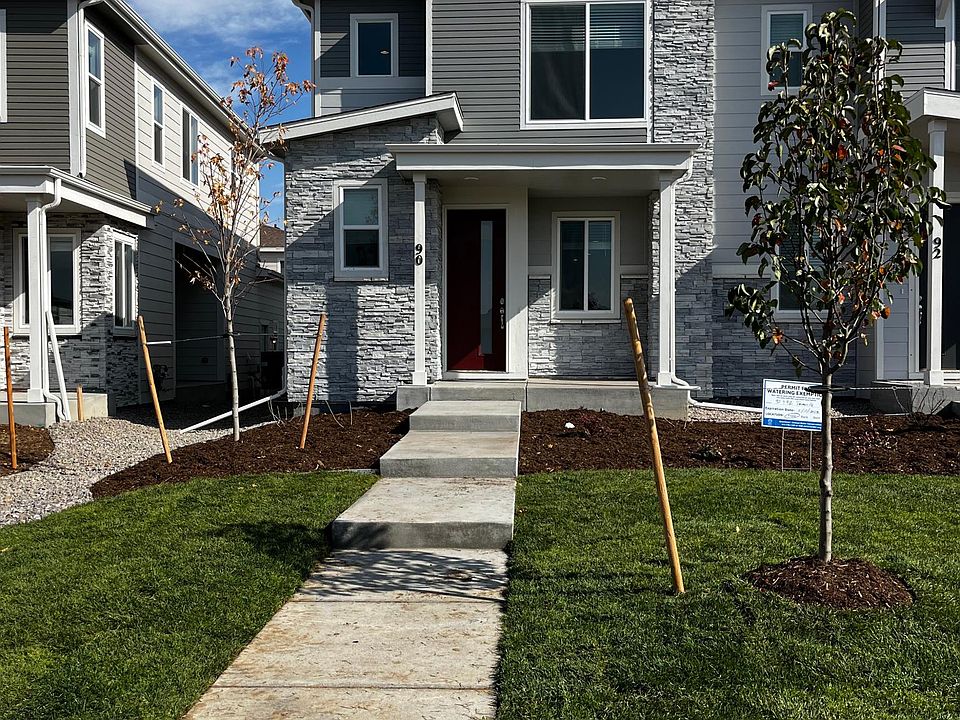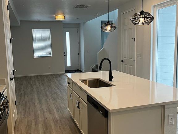 This is a beautiful, new two-story townhouse that boasts an open floor layout, high ceilings, and designer finishes, making it perfect for dining and entertaining. The inviting living room seamlessly connects to the dining area, creating an ideal space for meals and conversations. The kitchen is equipped with stainless steel appliances, a quartz center island, and a roomy pantry, and offers access to a covered patio that is perfect for relaxation. Retreat upstairs to find two generously sized secondary bedrooms that share a bathroom, making them ideal accommodations for family and guests. The primary suite features a spacious walk-in closet and a private bathroom and is located near the laundry area. Additionally, the rent includes trash and snow removal, and there is an attached two-car garage. The use of the recreation center, including the use of the gym, bar, and clubhouse, is included in the rent. HOA $100 a month. Close to DIA, Buckley Air Force Base, E-470, short walk to the neighborhood school and recreation center.