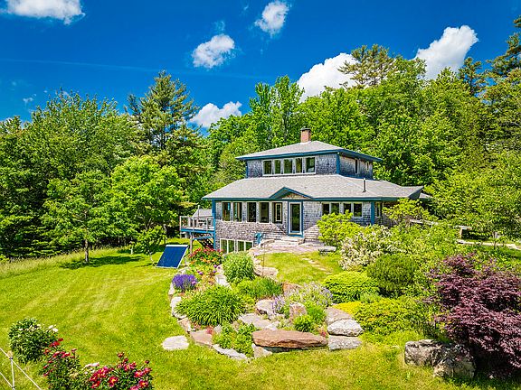 This fantastic and peaceful homestead is tucked well off Moody Mountain Road in a remarkably private setting. The main house features a comfortable, relaxing layout and sun-filled rooms overlooking gardens, fields, and woodland. The first floor has an open living space for cooking, dining, and conversation. Directly off the living space is a screened porch and open deck for soaking in the sun and sounds of nature. A first-floor bedroom, full bath with cork floors, and laundry room complete the main floor and allow for one-floor living. The second floor comprises the primary bedroom, bath, and a comfortable office space. The walkout lower level offers an opportunity for an additional bedroom and studio or workspace, with lots of windows, light, and direct access outside. The home has exceptional detailing, including built-ins, stained glass accents, and beautiful wood detailing showcasing stunning craftsmanship. A separate barn with a carport, woodworking shop, and chicken house sits adjacent to the main house. The *** acre property consists of amazing perennial gardens, annual gardens, vegetable gardens, orchard trees, rolling lawns, and views; it is one of the loveliest country settings in Midcoast Maine.