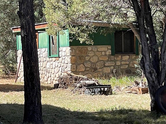 Acreage near the National Forest. Great potential for hunting camp. Multiple buildings on the property. 40' covered RV parking with 50 AMP service. There is additional RV Hookup with 30 amp. Included on the property is adorable tiny house , with a murphy bed. Could be used for multiple purpose. Stone structure with power on property. The property has agood producing domestic well, newer septic system. Tall cool pines, and back drop of mountains. Over 12 acres, and short ATV drive to the National Forest. Abundance of Mule Deer, Turkey and Elk. This is located in Unit 34 hunting area. Included in the sale an older Ford Tractor, shredder, bucket, blade. And a craftsman riding lawnmower and trailer. All equipment is operable.