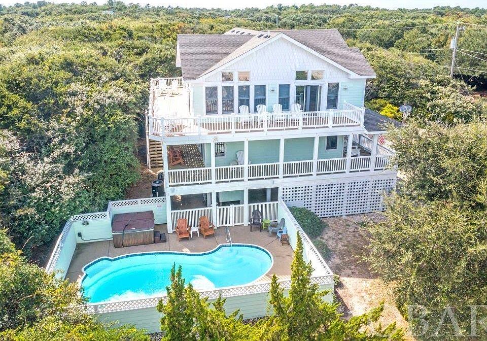 YOU WILL LOVE THIS SOUTHERN SHORES HOME - "BEACH BELLA" It has it ALL! ... ELEVATOR, POOL, HUGE GAME ROOM, AND MORE! Located Just 2 Lots from the Community Oceanfront Beach Access! Cross over Ocean Boulevard at the very visible NCDOT CROSSOVER - so traffic stops for you to cross ... Altogether maybe a 4-Minute Walk to Toes in the Sand & Surf at your Feet! *** The Design maximizes the home's location and even though you are so close to the Beach you also have Great Privacy! * Plenty of parking for vacationers but that also makes it easier for when you want to have Family & Friends stay for a visit! *** The Top Level 3 Features the Main Great Room w/ Volume Ceilings with Built-In Surround Sound Speakers and loaded with can lights for great lighting, plus the window array provides great Natural Light as well * The Living Room Features raised hearth Gas Fireplace, Open Dining - plenty of seating at the table & at the Kitchen Center Island * The Kitchen is open to the Great Room so anyone working there can stay a part of the Fun happening around them * Double Dishwashers for when there is a large group * Sliding glass door out to Top Level South & East Decks - Overlooks the Pool & a Peak at the Ocean! (NOTE: Build a Roof Top Deck to capture some awesome Ocean Views! Research the possibilities!) * On this same Top Level 3 there is a Main En Suite Bedroom w/ Large Bathroom * Office Desk Space, Powder Room for the Great Room & ELEVATOR (which does go to all 3 levels!) *** Mid-Level 2 Features 4 En Suite Bedrooms - so each has its own Full Bath! * Extra Large Main Entry Foyer and well-designed Hall area * The Mid-Level also Features a Covered Sun Deck on the South & East Sides *** Ground Level 1 Features a "HUGE" Game Room with a Pool Table & Foosball, Powder Room, En Suite Bedroom with its own Full Bath! Sliding Glass Door out to the rear Grilling area and to the Outside Shower / Pool Area, ... or there is a Carport Door Entry into the Game Room through which you can also access the Outside Shower & Pool *** Big Carport with lots of covered area! NEW Pool Heater *** "X" Flood Zone so NO Flood Insurance required *** Home is perfectly situated for use as a Primary Residence - quiet / private and close to the Beach *** Or, would be a great Second Home! ... Or as it is now ... a Perfect Vacation Rental / Second Home! *** Offered Fully Furnished & with ready Rental Income ... Rental Gross $80,000 Range! *** The Community & Area Features - Southern Shores has a voluntary Civic Association at $65yr, and you can join the Boat Club for $25yr and Tennis $25yr * Boat slips additional * You will have access to multiple beach accesses - including the Hillcrest Beach Access w/ approximately 60 spaces, outside showers, dune gazebo & deck looking out over the Atlantic Ocean, volleyball court, seasonal facilities, and lifeguard in summer * 3 Boat Marinas, Boat Ramp, 2 Soundfront Beach / Parks - great for Sunsets w/ wine & Cheese * Town Sidewalk along entire Ocean Boulevard & Duck Road - miles of biking/walking in Southern Shores * The Duck Shops and Restaurants are just minutes way - check out the Duck Town Green & Soundfront Boardwalk * Additional Area Attractions include the Corolla Lighthouse, Wright Brothers Memorial, Jockeys Ridge & much more *** Kitty Hawk Elementary School is just minutes away! Easy access out to the Wright Memorial Bridge* Great Community & wonderful Neighbors *** A few Minutes' Walk to the Beach * Elevator * Heated Pool * Huge Game Room *** After a day at the Beach the Family can enjoy a Swim in the Heated Pool ... Check it out - the Pool Deck Features Speakers powered from the Game Room Audio System - you can Bluetooth stream your Music ... it will make the "Experience" a "Memory"! *** Offered Fully Furnished *** 2022 YTD Rents $80,066! ... and 2023 already has $61,040 Booked w/ Sun Realty Rental Company Projecting $102,816 possible! *** This Home has the right Features and Design ... You will love it! ... Come See!