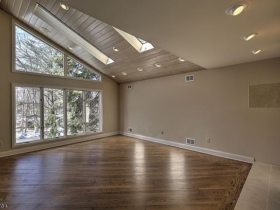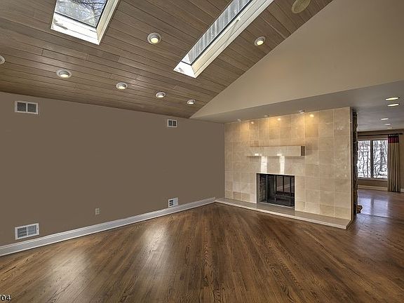 Sun-filled Custom Contemporary in Watchung Bold design elements lend unparalleled style to a striking contemporary in Watchung. A modernist approach and innovative architecture define this unique, spacious and sunlit residence situated on a quiet cul de sac. The flowing floor plan of five bedrooms and four-and-one-half baths measures over 3,500 square feet, with additional living space in the finished basement. A façade of fieldstone and classic wood siding lends appeal to this gracious residence, which is approached by a paved circular drive amid towering pine and deciduous trees on 1.5 acres. Built in 1987, this unique home’s up-to-the-minute feeling is testament to its timeless design. An open floor plan offers oak hardwood floors, a dual-sided fireplace, expansive window walls framing natural views, numerous skylights, neutral paint colors and generously-dimensioned gathering spaces. The flowing layout is introduced by double doors into the skylit entrance foyer featuring a contemporary wood staircase. Just off the foyer, a vaulted and skylit ceiling lends an airy sense to the living room which shares a fireplace with the step-down family room. Special occasions are enhanced in the spacious dining room with recently refinished oak floors and floor-to-ceiling windows. Tucked away from the public spaces is a study featuring built-ins and a full bath nearby. A newer chef’s kitchen is fitted with richly-toned wood cabinetry, granite countertops edged by a decorative tile backsplash, upper-end stainless steel appliances and a light-filled breakfast area containing a wood beamed ceiling and double transom-topped atrium doors to the deck. Completing the main level are powder and laundry rooms. Upstairs, an oversized master suite tucked under wood ceilings presents a walk-in closet, dressing area and marble master bath featuring a jetted tub, two-person clear glass door shower with multiple jets and bench seating, and a double sink vanity. Three additional bedrooms on this level share another full bath. The finished basement contains a recreation room, an exercise room and a possible bedroom with full bath. The huge cedar closet is perfect for additional storage space. Centrally located in Somerset County, suburban Watchung is approximately 30 miles from Manhattan and about 20 miles from Newark Liberty International Airport. This exceptional contemporary is just minutes from area schools, Watchung Valley Golf Club, Washington Rock State Park, plus countless shops and eateries on Route 22.