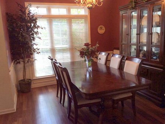Very private sitting in a court. Split bedroom plan with upstairs bonus room that can be a 4th bedroom. Hardwood throughout - even bedrooms. Baths have ceramic tile. There is a 12 x 12 sitting area in the master bedroom. Screened back porch. Very nicely presented above ground pool and decking. log cabin like storage does not stay with property.