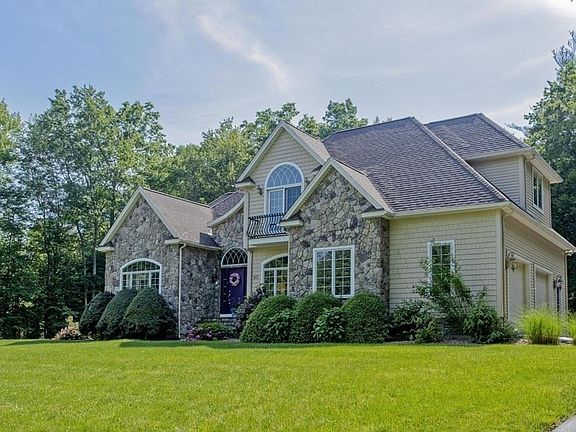 Luxury Living in East Longmeadow, MA! Pride of ownership beams in this Custom Built one owner Colonial home! Stunning curb appeal on a slightly elevated 1 acre lot that abuts conservation area with walking & horse trails creating lots of privacy on one of the towns most desired family streets. The interior features an open floor plan on the main level,10' high vaulted ceilings with an abundance of oversized Pella Windows bringing in lots of natural light. Enjoy views of nature from the comfort of your home while sitting by the stone gas fireplace surrounded by built in cabinets. The chefs kitchen has 2 islands, a 6 top commercial grade stove with an additional oven and a kettle faucet over the stove a must have for todays modern kitchens. The 1st floor master bedroom suite has 2 walk-in closets a large master bath including a steam shower, jacuzzi & a walkout door to a deck. 3 additional large bedrooms and bathroom on the 2nd floor. Finished basement for game room or extended family.