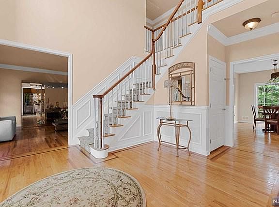 Exquisite, exceptional, extraordinary are a few words to describe this custom-built Center Hall Colonial with all of today's most sought-after amenities located on a peaceful cul-de-sac street. Saunter from the lemonade porch & enter the dazzling 2-story entry foyer. Throughout this glorious home you will find an abundance of moldings & high-end touches. FLR & FDR w/ oak hardwood floors lead to den w/ masonry wood FPL. Gourmet kit w/ custom cabinets, stone backsplash, granite tops & granite island/sink features all SS Viking appliances. Sliding doors to deck that overlooks the tranquil yard. First-floor BR, full bath & laundry complete this floor. Enter the stunning master suite w/ large sitting rm, dressing/nursery rm along w/ 2 walk-in closets & fabulous master bath- a true sanctuary! 3 BRs & a full bath complete upper level. Lower level lends itself to private living- area w/ 2 bonus rms, MEIK, LR, full bath & utility/laundry rm. This sunlit area opens to the paver patio &yard.