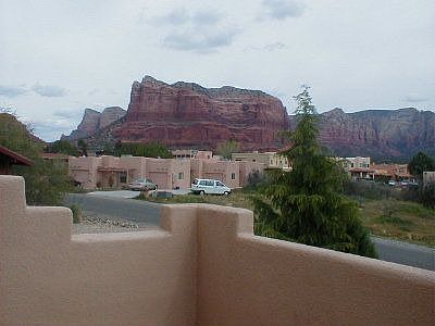 NICE 2 STORY CONDO WITH GREAT VIEWS FROM YOUR BALCONY OF COURTHOUSE BUTTE AND BELL ROCK. OPEN FLOOR PLAN, BREAKFAST NOOK AND GOOD SIZE KITCHEN. WOOD BURNING FIREPLACE IN THE LIVING ROOM AND BUILT IN ENTERTAINMENT CENTER. BEDROOMS UP STAIRS WITH FULL BATH AND 1/2 BATH DOWNSTAIRS. LAUNDRY ROOM WITH WASHER/DRYER. DOUBLE CARPORT. CLOSE TO SHOPPING AND SCHOOLS, SMALL PET NEG. (104)