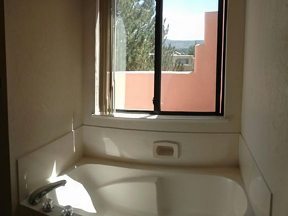 TODAY OPEN HOUSE SUNDAY SEPT 8th 11am to 1pm. This very nice two story, two-bedroom apartment is located in the Village of Oak Creek, Sedona. Near shopping and hiking/biking trails, you will enjoy all the amenities available in Sedona while living in a quiet neighborhood. This apartment is nearly 1,340 sqft with a built in entertainment center and red rock views from an upstairs balcony. Newer kitchen stainless steel appliances and downstairs flooring. Open living room with fireplace. Master has separate shower and soaking tub with views. Laundry room with washer/dryer. Central heating and A/C. Close to golf courses, hiking, biking and shopping. Two car carport. Rent is $1,800 per month. No smoking inside property. Owner pays for pest control and landscaping. Tenant pay for balance of utilities and trash.