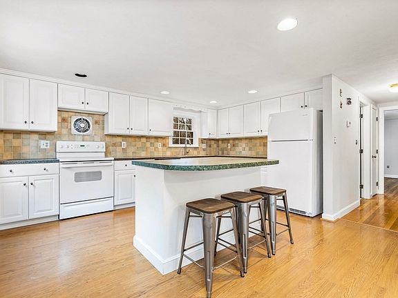 Classic gambrel on a large, private lot. A bright first floor layout boasts a generous kitchen with center island opening to dining room perfect for entertaining. A first-floor bonus room with closet offers opportunity for a first-floor bedroom, play room, or office. A fireplaced living room and half bath complete the main floor. Upstairs, a full bath and three large bedrooms with hardwood floors offers ample storage space. Full walk out basement and secluded back yard. A commuters dream with easy access to route 3, walking trails, Cohasset and Scituate Villages. Don’t miss your opportunity to customize this charming home!