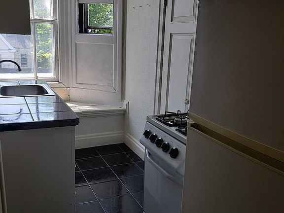 Micro-apartment in beautiful historic mansion. Perfect for commuter apartment. Living area with gleaming hardwood floor, separate kitchen with tile counter and floor, separate bathroom with tile shower, 1 large closet, and a small window seat under the kitchen windows! Off-street parking, coin-op washers and dryers in building. All utilities included! $725/month. Open House Sunday July 18 from 2p-4p. Come see this little gem! Cats okay, no dogs please. Owner pays electric, heat, and hot water. Cats only, no dogs. No smoking please. This is a quiet building in a quiet neighborhood.