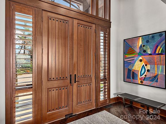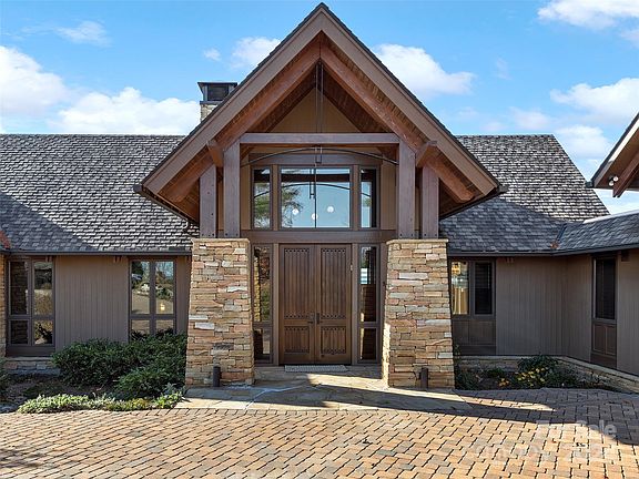 Mountain-modern custom home with Long Range Views.Foyer provides an immediate eye-catching view of the Blue Ridge Mountains & the French Broad River. Wood, stone and steel details throughout. The custom fireplace extends all the way to a vaulted ceiling, creating a focal point for the entire open plan living area. In addition, the retractable porch doors bring the outside in. This easy flow makes for exceptional entertaining. Custom kitchen was recently renovated & feels sleek and elegant. Island with hidden storage along seating side. Large Walk-in pantry. Dining Rm enjoys surrounding views & opens to the "View Porch" which boasts a kitchen, fireplace, ceiling mounted heaters for winter months & 3 levels of remote controlled screens. Primary Suite  HIS & HER closets, Walk-In Shower, Soaking Tub & Oversized Vanity. Lower level home theater, wine storage service and coffee bar. Home gym/office area w/ built-ins. 2 Suites & Covered Porch also on lower level. Heated and Cooled garage.