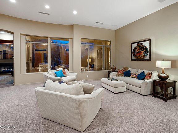 Why go to a resort when you can have one right in your backyard? Welcome to 90 Sunridge Circle - Resort Living on the Golf Course! This model 3 bedroom 3 bath home is nestled steps away from the public championship Sedona Golf Course, club house, Hilton Health Spa, and backs the green of the driving range! What a golfer's delight! One of only 5 homes in the Sedona Golf Resort where short term vacation rentals are allowed! Live Large in this generous home offering a center placed formal open Living Room boasting a wet bark to ease your entertainment duties and a wall of windows that look out onto a magical walled back yard playground featuring both covered and open flagstone patios, a Kiva inspired wood burning fireplace, rocked water fall and pond, and a heated inground hot tub! AHH!!! The perfect place to relax after a round of golf or a hike amongst the red rocks. Kitchen, dining area and family room are combined into a great room boasting high niches and built in shelves with a gas fireplace. What a wonderful place for gatherings as Kitchen offers a center island, loads of cabinets, dual ovens and nice appliances. Kitchen, Wet Bar, all 3 bathrooms are finished with maple cabinetry, speckled granite and or Mexican tile and backsplash. Your feet will be happy as flooring consists of large Flagstone, carpet or Italian Travertine stone. Offering a split floorplan, the primary bedroom has soaring high ceilings and opens out onto the back patio. Primary bath is dripping beautiful and offers a garden whirlpool soaking tub, large shower, dual sinks and a huge walk in closet. Other wing of home boasts 2 generous sized bedrooms, full bath, guest powder room, and lots of built in cabinets for all your goodies! 3 Car garage, with 1 bay currently being used as storage room, dual 15 seer air conditioning units, and on sewer! All furnishings are included to make this your turnkey second home, primary home or an investment property. Close to tennis, trails, restaurants, groceries, and shopping, this home is a delicious delight!