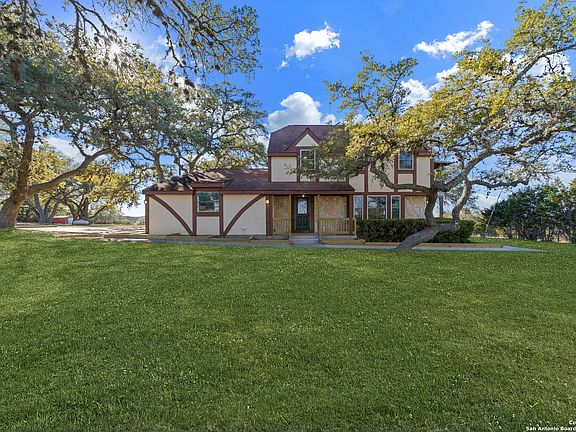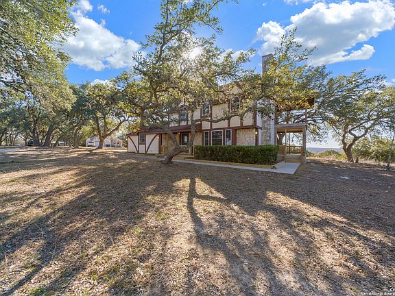 Gorgeous sunsets, distant hill country views, majestic live oaks, and a sparkling inground pool. This beautiful, original owner, 4 bedroom, 2.5 bath three story home on just under 3 acres in Spring Branch has it all. Located on a quiet dead end paved county road. It soon will be time to enjoy dips in that sparkling blue pool. Plenty of space for entertaining, cookouts or just relaxing and enjoying the distant views and wildlife. Room to build a garage, workshop, mother-in-law or guest casita. The spacious kitchen boasts stainless steel appliances including a wine cooler, deep double bowl undermount stainless steel sink, granite countertops, Travertine backsplash plus ample cabinet and countertop space. Snuggle up to a cozy fire in the stone fireplace on those cool hill country evenings. All baths have been tastefully updated. Outside access to balcony from owner's retreat. Daydream or read a book from the third floor landing window seat. All wood look tile flooring downstairs, luxury vinyl plank wood look flooring upstairs. Updated hardware. One HVAC replaced in 2021. Windows replaced with Pella Windows. The garage conversion is centrally heated and cooled and listed as a bonus room under measurements. Mud room could be used as a breakfast or craft room. This home has been in the process of a remodel and has a few projects that need completion. The seller will not complete those remaining projects and the property is priced accordingly. Convenient to restaurants, shopping, HEB, businesses and schools. Move in and complete the projects. Don't miss this opportunity to live your hill country dream!!!
