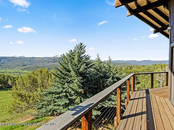 Beautiful very private passive solar home on 6 acres. A huge view of the Elk Mountains without a neighbor in sight. A large stone fireplace completes the living room while the main bedroom has its own wood stove. Hardwood flooring and wool carpet. Main level radiant heat. Orchard, gardens, sitting areas, studio, barn, shop, and caretaker unit. Extensive decks and patios, hot tub. Surrounded by nature and a haven for wildlife.