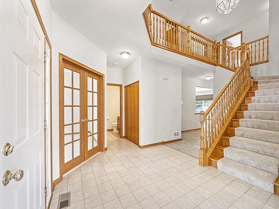 GET SPACED OUT. This 5 bedroom, 3-1/2 bath, 3395 sq. ft. home with a 3/car tandem garage offers plenty of room throughout its vast open floor plan. The main level highlights include a 2-story tiled entry with a winding oak railed staircase, private den with french doors, generous living & dining room plus an expansive family room with fireplace providing plenty of seating options and a second staircase to upper level. Central Vacuum & Intercom System add lots of convenience throughout. The kitchen features a large island, 42" cabinets, pantry plus large eating area. The BONUS 4-SEASON SUNROOM gives additional living space plus 360 degrees of sunlight and access to an EXPANSIVE 30 ft. x 19 ft. BRICK PAVER PATIO and large yard. Large 1st floor laundry with bonus storage nook. The second level blueprint gives everyone their own space with 4 generous secondary bedrooms including a Jack-and-Jill shared bath with separate sink areas for 2 of the bedrooms plus an additional full bath for the other 2...ALL with ceiling fans! Relax in the over-sized master suite with a tray ceiling featuring a luxury bath with soaker tub, separate shower, double sinks plus his & hers walk-in closets. Need even more room? Check out the ready-to-finish bumped out full basement. Home updates include BRAND NEW paint & upgraded carpet throughout the entire home plus a NEWER roof. 3/car garage offers tons of car and storage space. Conveniently located to park, path, retail, restaurants & more. ROOM FOR EVERYONE...AND THEN SOME! DON"T MISS IT!