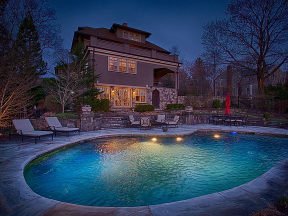 PRICE IMPROVED!!! Set atop Tower hill with spectacular views of the parklands, lake and skyline, this manor home exemplifies quality & craftsmanship in every detail. Enter through the covered porch to the spacious foyer that leads you to a floor plan as effortless for grand entertaining as it is for intimate gatherings. Features include refinished wood flooring, custom moldings, 4 fireplaces, state of the art kitchen, 4 balconies, side and back veranda, walk out basement, and all new windows and systems. Custom built, this home is unique in a town where the same builder built over 500 historic homes. This home includes features not found in other “Hapgood” homes. Additionally, the estate was completely remodeled by master builder, Bob O’Donnell, who maintained the integrity of the original design, while enhancing the home with additional living space, all new systems, quality materials include a cedar roof, custom windows, copper gutters, covered and open balconies, refinished Victorian radiators and stone pillars. The result is a unique blend of historical integrity meshed with the finest amenities available today. From the new blue stone walkway to the rebuilt covered porch with stone accents, it is eminently apparent you are entering a special home as you cross the threshold at 90 Tower Hill Road. The foyer, with its wide doorways and glimpses into the principal rooms, echoes that thought, this home is one of refined elegance, yet the welcoming ambiance and comfortable appointments beckon visitors to enter and linger in this resplendent home. The entry foyer spans the front to the back of the back of the home with access to the back veranda. Flanked by the formal rooms of the home, large doorways lead to the living and dining rooms. Both rooms feature grand fireplaces with brick surrounds. A French door off the living room leads to the newly built den or office with custom built-ins and a French door leading to a covered balcony. Another covered balcony is found off the dining room, also opens to the kitchen. The exquisite kitchen features a wonderful mix of materials including marble, cross hatch butcher block, stainless steel and cabinetry finished in a creamy white finish and wood stain. Amenities include: 3 sinks, 2 refrigerators, 2 dishwashers, 6 burner range with griddle, a large breakfast area, breakfast bar for 6, butler’s pantry, pantry closet, desk area and 2 built in hutches. A kitchen door opens to the spacious walkout basement with full bath and changing room and French doors to the pool, patio and grounds. Seven bedrooms include and the indulgent master suite with fireplace and new bath. There are 2 additional balconies on the second level. Every room offers either skyline views or views of the expansive parklands behind the home. Arguably the best "Hill" location in Mountain Lakes, this apex site affords panoramic views of either the New York skyline or over 500 acres of county parklands and nearby Birchwood Lake. Capitalizing on this perfect setting, the owners created a backyard offering a Gunite pool, stone patio and professionally landscaped gardens. The iron fence around the pool is not only aesthetically pleasing, but disappears into the background allowing the landscaping and views beyond to overshadow. Nestled into the parklands with woods between the side neighbors, the privacy and serenity are impressive. Stepping out on the back patio, the view gives the impression of being in a remote location, yet this home is just minutes from major routes, shopping and the town’s award winning schools. Venturing down the hill from the backyard, a short hike brings you to the popular Birchwood Lake with its sandy beach and concession stand. This is surely the perfect yard to complement the perfect home. Enjoy your view from the top, you have arrived! To schedule your private tour, contact Ginny and Jeff Cassidy, The Cassidy Realty Team (201-230-5539).