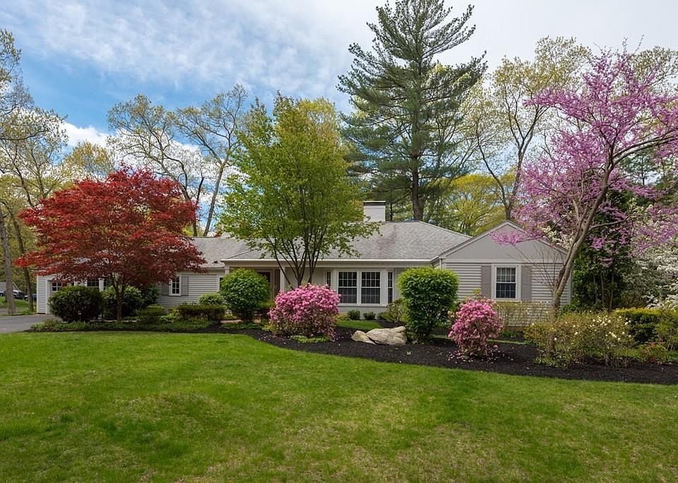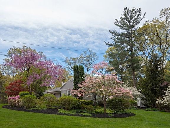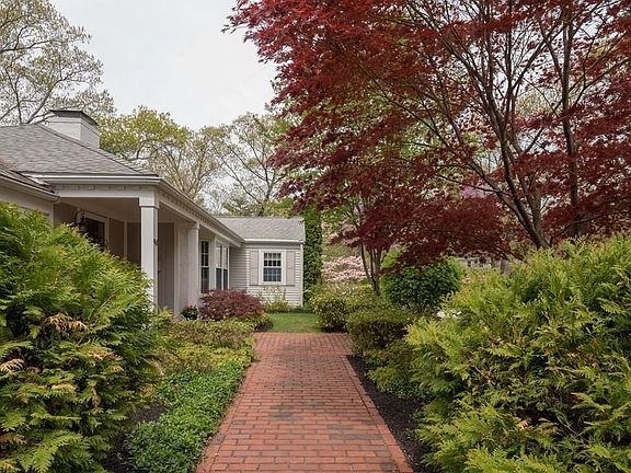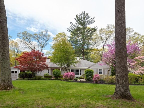 A very special hip roof ranch offering over 2000 sq ft of one-level living and a lush, beautifully landscaped lot. Quality improvements and additions have created a timeless classic with newer baths & kitchen(with pantry),spacious rooms,built-ins,two fireplaces,central air,alarm system,sprinkler system,French doors to a private brick patio,hardwood floors,laundry room,walk-up attic, 2 yr old furnace and oversized 2-car attached garage. Septic is for 3/4 bedrooms. A great house!