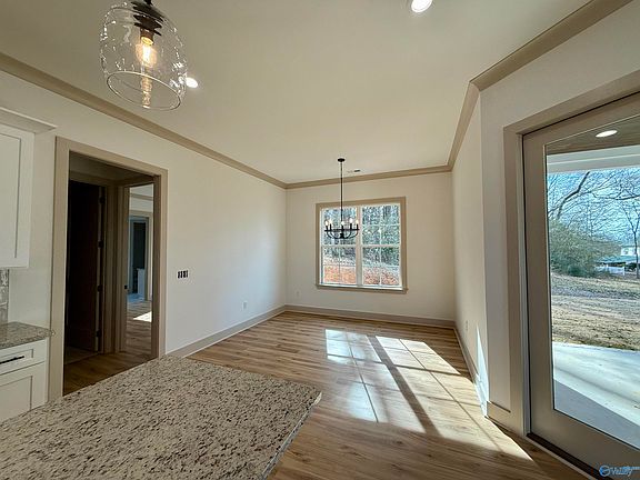 Lake view, Guntersville city limits and a beautiful brand new brick home! This house boasts three bedrooms, two bathrooms, walk in pantry and an amazing back porch with wood details! LVP and tile throughout this home with granite countertops, tile backsplash and so many other beautiful details. Browns Valley Cove is Guntersville's newest subdivision with great views and just a few minutes from the beautiful walking trails and nearest boat launch! 1 year builders warranty included with purchase of home! **BONUS ROOM/4TH BEDROOM CAN BE ADDED FOR $50K ABOVE GARAGE**