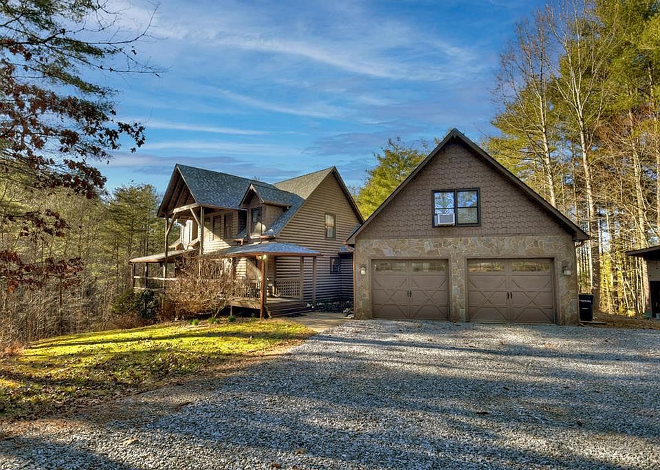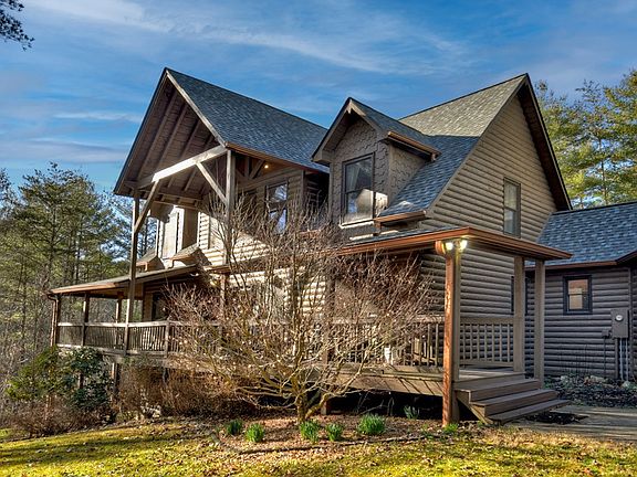 Discover the allure of this well maintained 3-bedroom, 3-bathroom residence nestled within the highly coveted Twin Lakes Community, just 4 miles from downtown Blue Ridge. Serviced by well-paved roads leading to its doorstep, this home boasts a generously sized great room adorned with a striking rock fireplace with wood burning stove, alongside a convenient main floor hosting the master suite and laundry facilities. The modern kitchen connects to the great room, while a large, covered wrap-around porch and a two-car garage enhance the appeal. The garage provides a finished bonus room which also includes a bathroom with shower. Upstairs, find a Jack & Jill bath serving two bedrooms, complemented by a sizable loft room adaptable for various purposes, be it an office, a cozy sitting area, or additional accommodations. The terrace level features a large media room, complete with flexible spaces ideal for crafting your own office enclave or a dedicated workout area/workshop. The grounds being low maintenance offers a peaceful setting, within a quiet and well maintained cabin community. Perfectly suited for those seeking a retirement haven free from the disruptions of short-term rentals, this neighborhood exudes convenience, lake access, and a relaxing atmosphere.