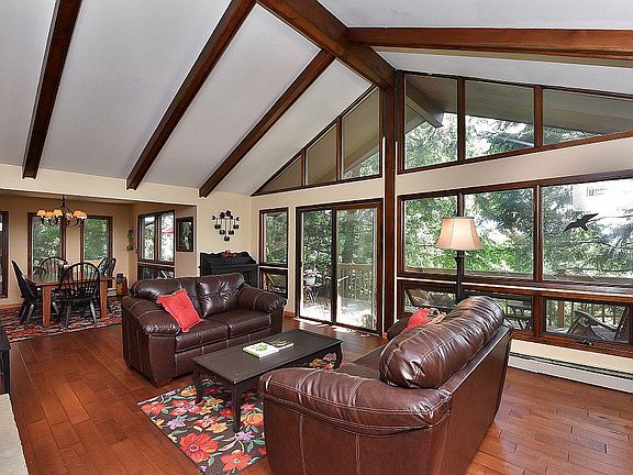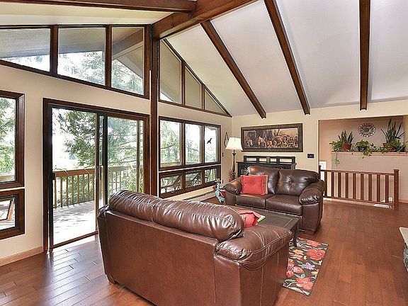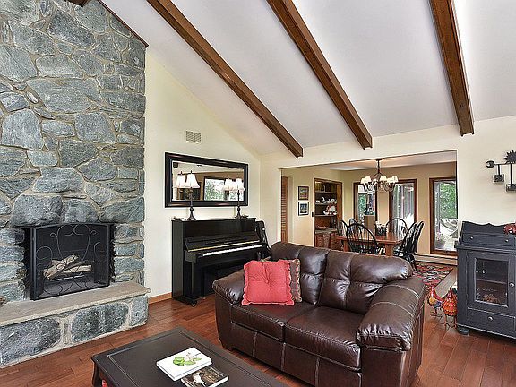 Walls of Windows best describes this special home with a view. Watch nature walk by the great room addition. Hard wood floors on main level. Updated Kitchen with Granite and Stainless Steel Appliances. Skylight. 2 Fireplaces on Main level. Updated baths. Many custom details and built-ins. Lower level has custom work areas for home business. Wet bar! Scenic deck overlooking golf course. Putting green included. Yard is fenced for large dogs. Home boasts 2450 Square Ft. on main level alone! If you are looking for privacy, a view and nature, this is your home. Close to trains and buses and major highways. Top school system.