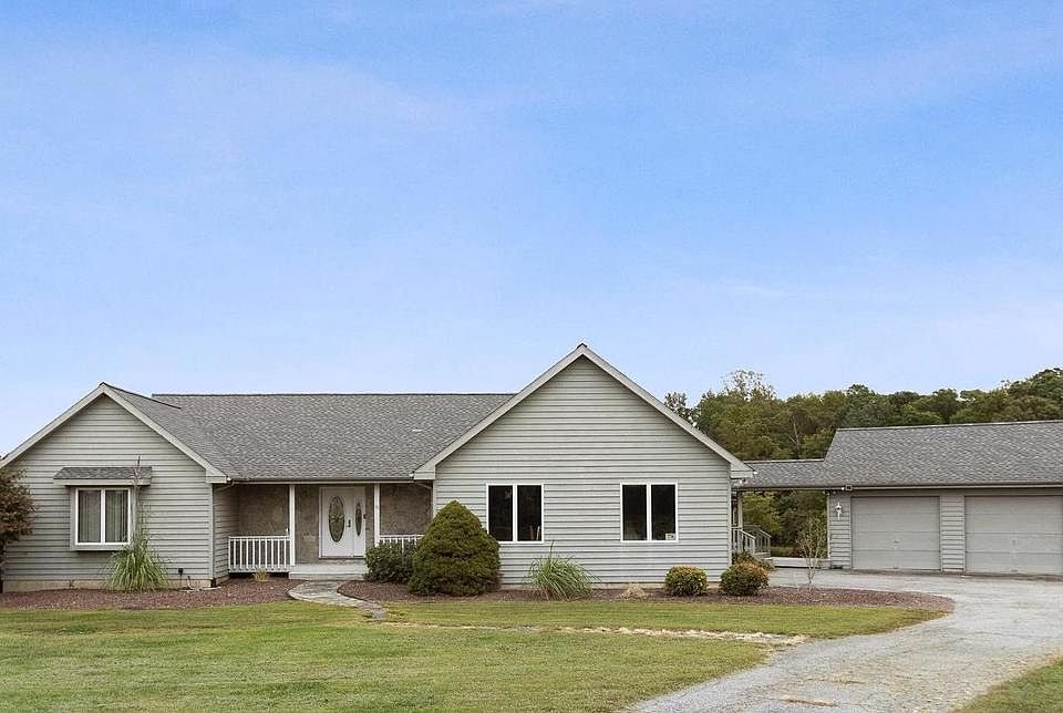 **JUST LISTED** Gorgeous Contemporary on 5 Rolling Acres with Pond & 3 Car Garage. Spacious and Open Floor Plan with tall ceilings, Andersen windows and sliding French Doors which exit to Deck overlooking scenic views of Pond. Great Room/Living Room/Dining Room with Hardwood Floors, vaulted ceilings, lovely Stone Propane Gas Fireplace with Mantle. Main Level Primary Bedroom with Full Bath with vaulted ceilings, 2 walk-in closets, Jetted Soaking Tub, Separate Shower and Double Sinks. 2nd Bedroom on Main Level serviced by Hall Full Bath. Main Level Laundry area leads to newly finished Rec Room with Pool Table (negotiable). Huge Lower Level is Ground Level Exit to Patio Accessed by Sliding French Doors and Features 2 Bedrooms, Full Bath, Family Room, Storage Room and Large Office/Bonus Room. Breezeway with Attached Lovely Gazebo Leads to Attached 3 Car Garage. (Garage Doors and Openers Sold As-Is) This home is located near three local marinas and is easy access to the Bay. Features Geo Thermal Heating and Air Conditioning, Private Well and Septic. No HOA. Negotiable Items: Piano, Zero Turn Mower and Generator.