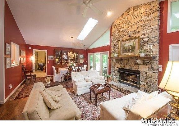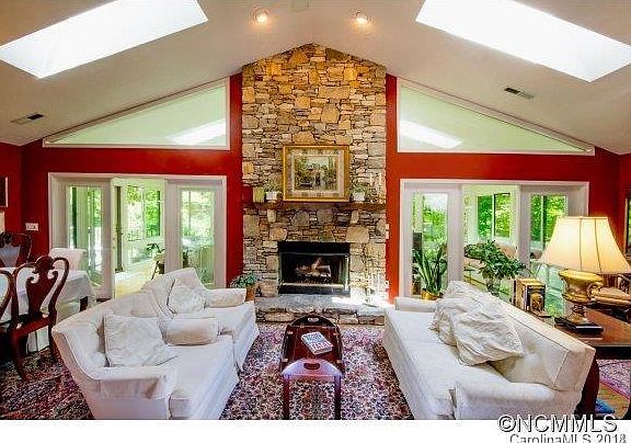 Custom mountain home with a view of 17th golf course green in beautiful Connestee Falls subdivision; great glassed-in sunroom faces fairway; gas fire-logs in great room with lots of windows and skylights; open kitchen and dining area; LL family room has wood burning fireplace, walkout basement/workshop, lots of storage space and room for family fun/entertainment. Joining unfinished basement/workshop area with additional storage space. Small stream runs through on side and out back of lot. Location is near clubhouse and other amenities. CFPOA UAF $8000 for first time buyer in Connestee. VERY MOTIVATED SELLER.