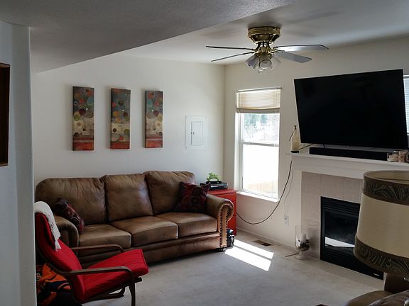 Three bedroom, three bath end unit with two car garage. Good neighbors and large floor plan. Second owner, well maintained. Full bathrooms all with tubs and showers, lots of closet space, vaulted ceilings in upper rooms. Cozy fireplace and small fenced in back yard. Adjacent to no-build-zone so beautiful view onto grass, little stream and mountains! Doesn't feel like a townhome due to space. We love our home in Palmer Lake, but are forced to relocate due to employment changes. Please call Rob cell (303) 981-9332 or home (719) 203-6687 to see the home. This house is VA assumable!
