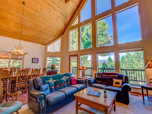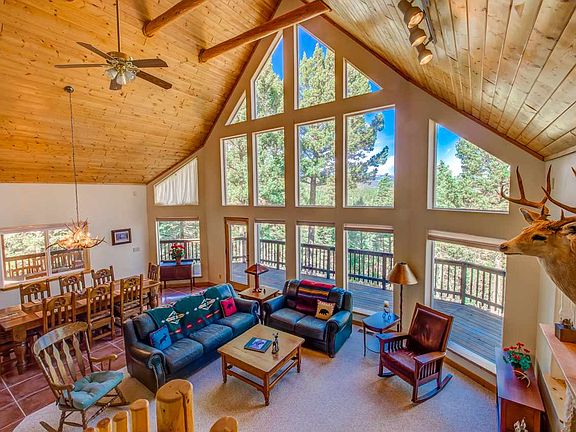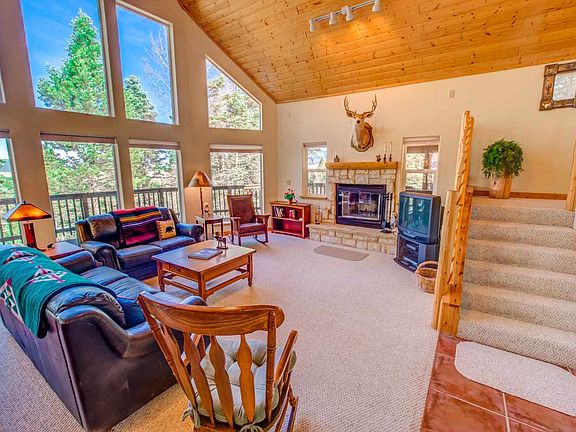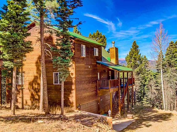 As you stand on the large wrap around deck, you'll know you're in the heart of the Southern Rocky Mountains in this meticulously maintained chalet style home. Featuring a heavily wooded lot with strategically trimmed trees that expose stunning views of Wheeler Peak, Eagle Nest Lake and Baldy Mountain. The main floor contains a great room with a substantial window wall that gives the feeling of being perched high up in the tree tops. The open concept is perfect for entertaining and there's even an upstairs loft for the kids to play in! Upstairs also boasts the master bedroom with a private deck, on-suite bathroom and a large walk-in closet. The other 2 bedrooms are on the main floor sharing a full bath. The walk out basement has a large bonus room, another full bath and an oversized 2 car garage with a work area. Located in close proximity to the town center with easy year round access.