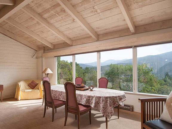 Come to the sun to see this large home with ample views of the Mountains in Carmel Valley. Just past the Village and up a short lane is a large home with much to offer. Three bedrooms, two baths, an expansive living room, and equally spacious great room comprise this roomy 2,696 square foot home. A dining room, study nook, and large detached two car garage are the bonuses. With two levels, two separate entrances and plenty of room, this home has been used as two completely separate residences. Master bath has a gorgeous newer update, some carpets were replaced recently. Impeccably clean. Enviable views, yet very private. 2.4 acres of wooded greenbelt.