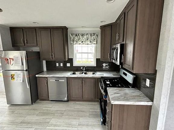 Brand new 60-foot manufactured home with a 12-month bumper to bumper manufacturer warranty and a six year additional limited warranty. Home construction is 2 X 6 for low heating costs. Beautiful kitchen with white cabinets, crown molding and built in decorative shelves make this home splash. The home comes with recessed lighting and stainless steel Whirlpool appliances. There is one bedroom and a full bath at each end of the home (2 BR AND 2 FULL BATHS). The heating is propane and the windows are energy efficient. Valley View Community's monthly rent is currently $428.5 and includes sewer and trash. Great price on a new home and low monthly expenses.