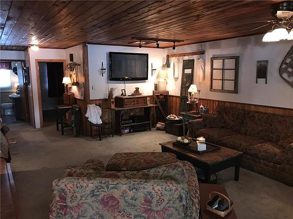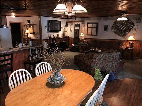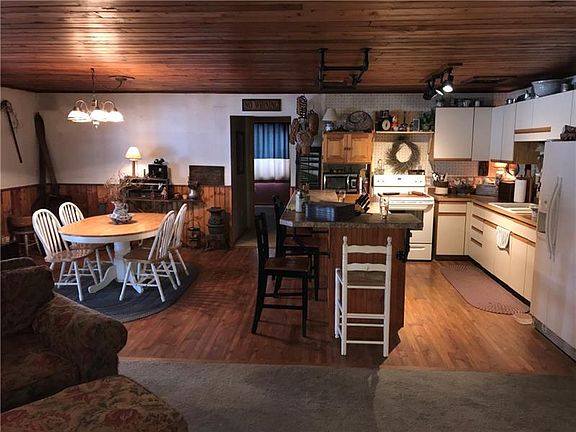 A Long driveway leads to this private custom built 4 bedroom 2.5 bath home situated on 10 acres. Features modern open living in kitchen, dining room and living room with large center island and knotty pine ceilings, a french door leads to 26x16 cedar three seasons room and large deck with pool. Updated main bath with clawfoot tub, beadboard on walls and ceiling, master bedroom with vaulted ceiling and half bath. Lower level features Huge game room with large antique bar and gas wall heater, laundry with full bath and large storage room. Integral 2 car tandem garage and detached 26x40 3 car garage. Offers country with convenient location.