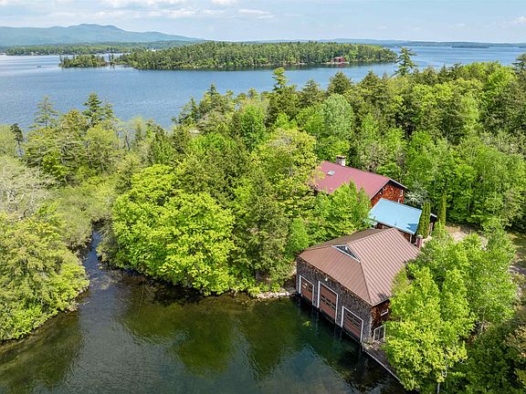 MEREDITH: Welcome to Hornets Nest Point. This unique lakefront property offers unmatched privacy and convenience to area amenities, both by water and land. It is the perfect retreat for those seeking a tranquil and serene setting. Nestled on 4.41 acres with a rambling waterfront of what appears to be 1800+/- ft (per some surveys). The point of land on this property separates two coves; one which contains the boathouse while the other has a nice sandy beach. A two-story 3-bay boathouse w/automatic doors provides ample space for all of your watercraft and lake toys. In addition to the boathouse, this property also features a spacious 2200 sf hangar, perfect for storing all of your aviation needs. This building is heated and is equipped with a half bath. Offering secure storage and protection from the elements plus ample room to create a stunning display of your prized possessions! The main residence on the property boasts 3 BR's & 3 baths; One bedroom and bath on the lower level (with large family/rec room) and 2 add'l bedrooms/baths on the main level. The impressive two-story, double-sided fireplace can be enjoyed on both living levels. This Lake Winnipesaukee waterfront property truly offers a little something for everyone. Whether you're a water enthusiast looking to spend your days boating, fishing and swimming or perhaps a car and antique collector, this property offers convenience and ease of access right from your doorstep.