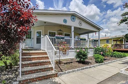 House beautiful! 55+ Community allowing 19+year olds/This home has cathedral ceilings/remote gas fireplace in living room(only home to have one) gourmet kitchen w/center island/garden window/formal dining room/master suite w/ walk in shower & double sinks/2 other nice sized bedrooms/laminate floors/custom molding/ recessed lights/Skylights/ceiling fans/Freshly painted/newer HWH/All new windows & doors/Belgium block driveway and walk way/beautiful gardens and landscaping/ relax on the porch or side deck the patio and shed completes this beautiful home/cleanChildren 19+ can live in the home.