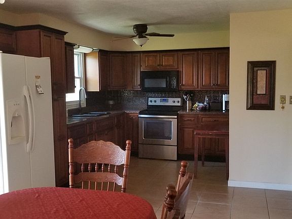 3 to 4 bedroom brick ranch with huge remodeled kitchen and dining combo with tile flooring--additional room could be 4th bedroom or den--tile in bathrooms . Central heat and air
