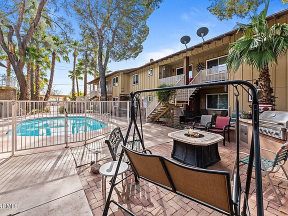 What an amazing location for year-round owners or seasonal visitors to enjoy everything Historic Wickenburg has to offer! Just a few blocks from restaurants, shopping, arenas and the museum, lies this adorable and affordable 2 bedroom, 1 bath home. Home comes fully furnished ready for move in and perfect for renting out!! Seller just installed brand new Pella Windows!! Community courtyard features mature landscaping, a built-in BBQ and fire pit area for great gatherings. Completing this desert oasis is the seasonal swimming pool - great for staying cool in the summer. This home has covered parking and an allocated storage unit. The HOA takes care of common areas, pool maintenance, water, trash, sewer and the property security video system. The proceeds of the onsite, coin operated laundry support the HOA.