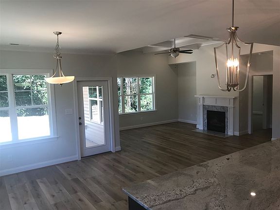Fabulous RANCH Plan! Nearly complete, this Beautiful one level home is built with ease of accessibility in mind! A mere half step up from parking to living with lots of wide door openings for easy passage! A beautiful coffered ceiling adorns the large living area ceiling. An enormous island, Lots of cabinets in the kitchen, and the living is easy! A gorgeous entry door welcomes you home each day, and with a beautiful natural view from your covered porch, you'll be glad you are there! Don't miss out!