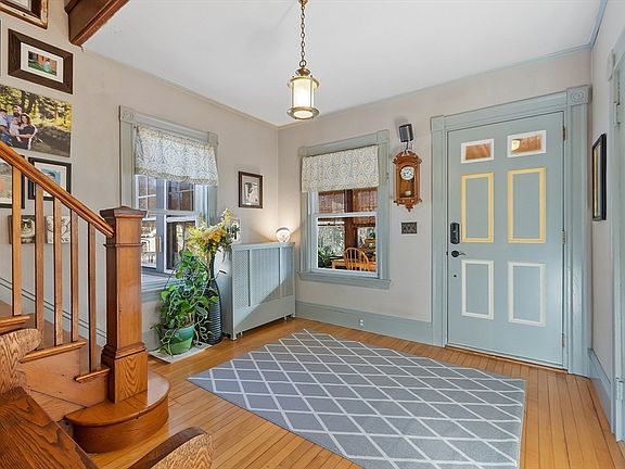 Beloved family sized home on beautiful level corner lot in one of Hudsons finest areas* Welcoming front porch into gorgeous custom foyer*4 BRS and 1.5 Baths, offering beautiful molding and detailing with built ins ,crown and wainscoting. Not your typical older home.1 yr old.updated roof, 7 yr Buderas 2 zoned boiler, oversized fully fenced backyard PLUS 2 car detached garage* Walk up to 3rd floor spacious attic is perfect for expansion for even more living space*Craft room and laundry plus storage in lower level too* Terrific floor plan offering the charm and character of yesteryear w/todays updates*Walk to elementary school and close to downtown and major commute roads* You do NOT want to miss out on this opportunity to call the HOT town of Hudson your new home!