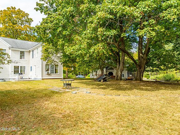 You'll fall in love with this dreamy c. 1840 farmhouse on nearly 15 acres in the heart of East Greenbush. Enjoy holidays with the spacious front-to-back living room with federal fireplace and built-in shelving. A sunny dining room overlooks a cozy patio, while the large kitchen with island flows into the picture perfect breakfast area. Four spacious bedrooms and two full baths complete the upstairs. Outside, the enormous outbuilding adds incredible value — ideal as a carpenter's workshop, hobbyist studio, or even an extra space for storage.