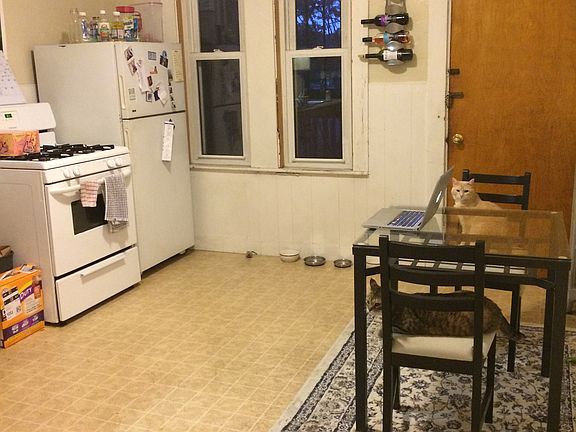 Living, dining, office and private back deck. One block to Forest Hills Station and also close to grocery and restaurants. Gas Heat, gas stove. Excellent deal!