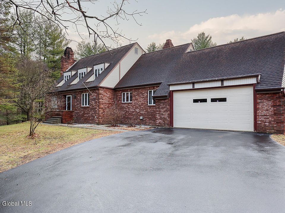 Craftsmanship abounds in this owner-built English Tudor style brick home. Absolute best location Rensselaer County has to offer on a quiet wooded road in an area of custom homes on large private lots yet less than 10 minutes from I-90. Natural woodwork, solid wood doors, two fireplaces, spacious 1st floor laundry, high end flooring, and much more. Property also boasts additional surveyed building lot with drilled well.
