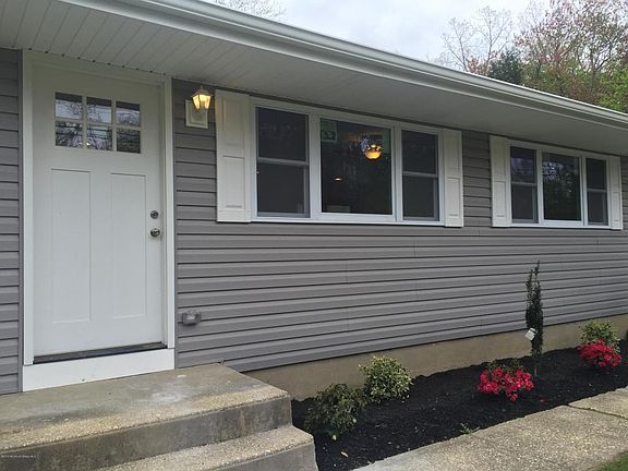 GORGEOUS FULLY RENOVATED RANCH WITH FULL FINISHED BASEMENT! Redone down to the studs! Brand New Roof, Windows, Siding, Doors, Furnace, C/A Unit, Fixtures and Landscaping. Driveway Newly Repaved. Spacious, Private Lot backs to woods. Gorgeous Brand New Kitchen with Stainless Steel Appliances, Granite Countertops, 18x18 Ceramic Tile Floor and Beautiful Glass Subway Tile Backsplash. Shining Refinished Hardwood Floors and Recessed Lighting throughout. Beautiful Brand New Bath. Brand New Finished Basement with New Sheetrock and Carpet features Built-in Stone Bar and Woodburning Stove. Basement also Rough Plumbed for Bath. Beautiful Curb Appeal! Beautiful little touches throughout. Mint, Move-in Condition! WON'T LAST!