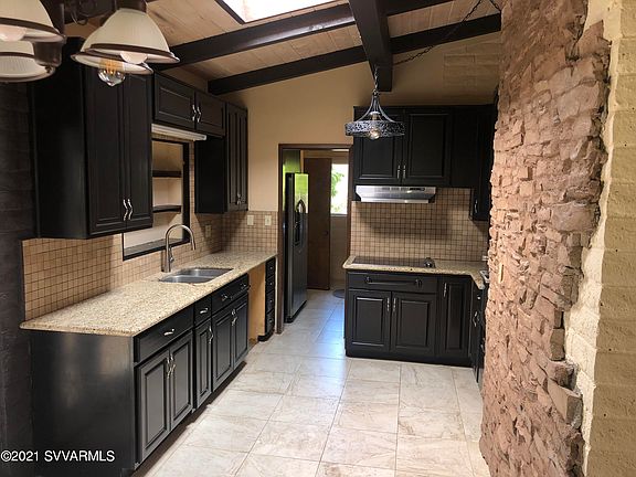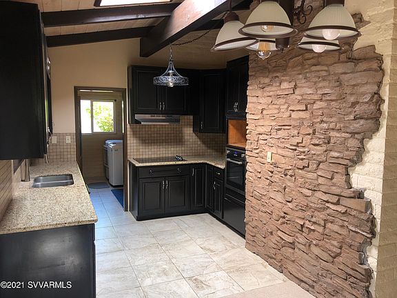 Located in the Village of Oak Creek, this Sedona home features rustic wood beam cathedral ceilings, a wood burning fireplace, red rock views, and skylights. Newly remodeled kitchen and bathrooms with granite and stainless steel appliances. New Washer & Dryer. Patio with large fenced in backyard. Recent new roof. HOA.1701 sq. feet. PLEASE NOTE: Photos for this listing are updated as of 3/15 when back on market. Seller has done upgrades since such as painting, new carpeting and removed back decking.