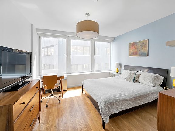 Corner Loft-Scale 2BR/2BA (1,186 sf) w/ NW Exposures, Furnished, Full-Service Condo. Turn-key furnished corner 2BR/2BA with double NW exposures and 1,186 sq ft of loft-style living at Be@William. Enjoy a wall of windows over the landscaped tree lined plaza, a gracious entry foyer with twin closets, and an oversized living/dining room that's perfect for entertaining. The open kitchen with white lacquered cabinets and well-proportioned island boasts modern appliances and dishwasher. Both bedrooms are roomy and can easily fit a king sized bed with an en-suite bath and 2 closets for the primary. Currently configured with two queen beds. Available for an early November move in furnished. Welcome to Be@william, a boutique condo located at 90 William Street in the Financial District. This full service building offers roof top indoor/outdoor Sky Lounge with billiards table, entertainment center, kitchenette, barbecue grill, well-equipped gym and laundry facilities. Close to great shopping, restaurants and transportation with the Fulton Street subway hub, South Street Seaport, and Westfield Shopping Center at hand. Upfront fees include first month rent ($7,495) one month security deposit ($7,495) and condo application fees: Application Processing Fee ($250), Move In/out Deposit ($500 refundable), Move In/Out Fee ($400), application initiation fee, ($120), digital submission fee ($65).