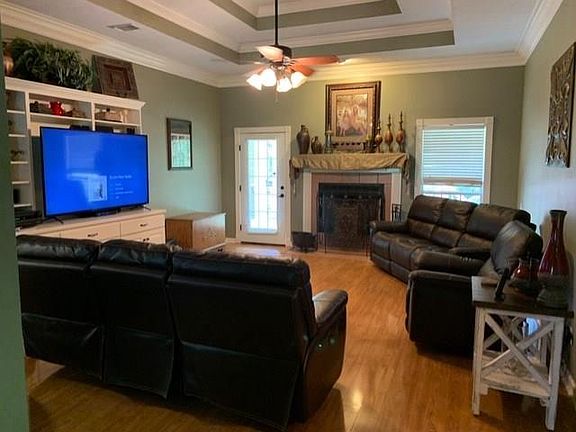 Gorgeous 4bd/3ba located on private acre lot. Home is very well kept and maintained. Inside details include: 4 bedroom 3 full bath(1 jack and Jill) split floor plan ,2 bedrooms each side. Master suite with trey ceiling and Master bath with his/hers closets and Jacuzzi tub. Breakfast area with trey ceilings. Kitchen with new appliances, custom cabinets, 3 cm granite and tile backsplash and new hardware. Large laundry room with pantry. Living Room features double trey and moldings, wood fireplace and hardwood floor throughout. Crown moldings throughout. Tile floors in kitchen, laundry and all bathrooms. Two car garage with storage closet. 20???x16??? deck with pergola. Alarm system with 2 keypads. Two hot water heaters less than a year old with remaining warranty. Entire ac unit is less than 2 years old with a 8 years left of warranty. Yard has a 6 zone Rainbird sprinkler system. Landscaped yard. Interstate metal building for storage. Very quiet dead end/looping street. Great school zone!