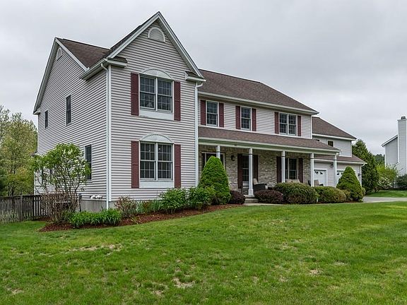 This beautiful Contemporary-Colonial sits on nearly an acre lot. Offering four generous bedrooms, three and a half baths, a finished basement, and a stunning newer addition over garage. There is a gourmet 'eat-in' cooks kitchen, a wet bar with wine refrigerator, and formal dining room, making entertaining a breeze. The living room has instant ambiance with a contemporary gas fireplace, and large picture window. There is also an office, and another den with a fireplace. The mudroom entry features well planned custom built storage. The master suite has two walk in closets, a jetted tub, and a private sitting room. Life is easier with laundry on the second floor. A beautiful bonus room above the garage has endless possibilities This home also offers a large fenced yard and outdoor patio, hot tub, central air, central vac, whole house generator, sprinkler and security systems in place. Whether you like to entertain, garden, cook or work from home. This turn~key gem is move-in ready for you