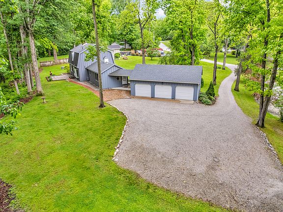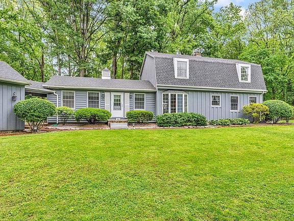 Tucked away at the end of a quiet cul-de-sac in desirable Woodland Heights, this charming 4-bedroom, 2 1/2-bath home offers the perfect blend of comfort, space, and natural beauty on 1.82 serene acres with views of nature and mature trees. With 2,268 square feet of living space and distinctive gambrel roof architecture, this two-story residence is a true gem. Step inside to discover a large eat-in kitchen ideal for everyday living, complemented by a formal dining room for special gatherings. The inviting living room features a cozy fireplace-perfect for relaxing evenings. The spacious main floor bedroom has a private ensuite bath and double closets. Outside, enjoy the peaceful beauty of wooded views from the delightful covered porch or rear patio-ideal spaces for savoring your morning coffee or winding down in the evening. The expansive yard provides a sense of privacy and connection to nature that's hard to find. The second floor features 3 bedrooms with large closets, a full bath, and the laundry closet. Additional features include a partial unfinished basement and a spacious 3-car garage with partial epoxy flooring and dedicated workshop space-perfect for hobbies, storage, or projects. Whether you're looking for room to grow or a quiet escape, this home offers the space, setting, and features to make your dream lifestyle a reality. Don't miss your chance to own this private woodland haven!