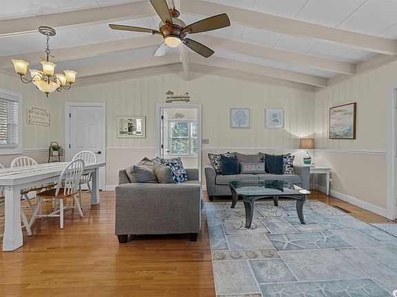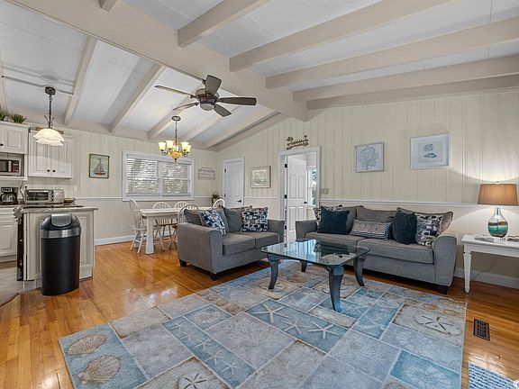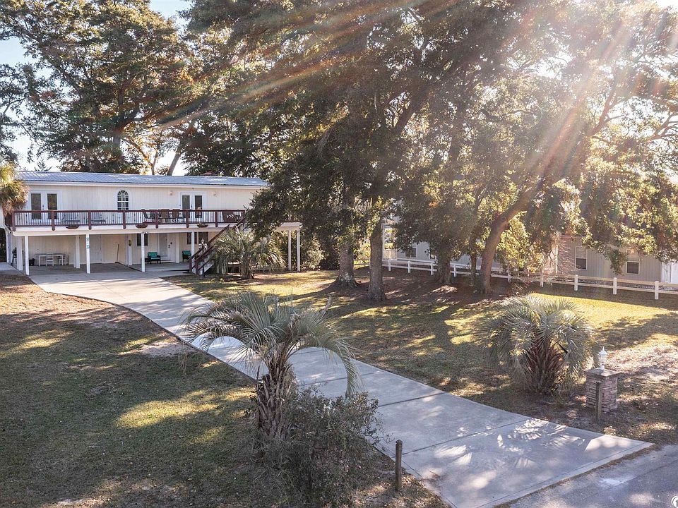 This Cherry Grove Beach house with NO HOA is just a golf cart ride to the ocean, shopping, restaurants, churches, nightlife, live music and more!! With a lockout 1BR/1BA finished lower level this property is perfect for sharing time and space with family and friends!! The lower level is set up with a full kitchen, living/dining area, washer/dryer, ceiling fans, hardwood flooring, large bedroom with masonry fireplace, built in cabinetry, full bath and French doors out on to spacious covered patio with outside storage closets. Second level living area enjoys private entry from oversized deck perfect for entertaining into living room with vaulted ceilings a newly renovated kitchen featuring solid surface countertops, stainless steel appliances, custom cabinetry, ceramic tile and island work space. Separate laundry room and 3 large bedrooms all with wonderful natural lighting, master suite offers lots of closet space, sliding doors onto deck. You can sit and relax under the majestic oaks that grow in the front yard while taking in the views of the Surf Golf and Beach Club or in quiet privacy of your back yard! This home doesn’t require flood insurance. It also has a new HVAC System. This beach charmer is perfectly located and has everything you need to enjoy beach living!