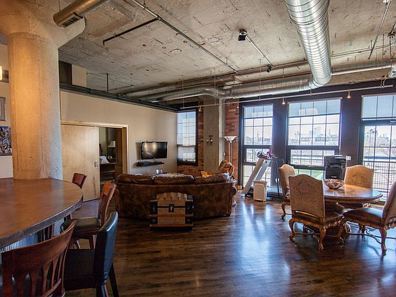 Ignore the Z Estimate and go to the Cedar Rapids City Assessors website...this is appraised at nearly 3x the estimate!! Loft condo living at its finest in the NEW BO neighborhood. This center unit on the 2nd floor offers wonderful open space with floor to ceiling windows, huge kitchen, dining and living areas. Enjoy the glorious summer days and nights on your own balcony overlooking the river. Both bedrooms are spacious and offer great closet space and large bathrooms. Concrete pillars, 14 foot ceilings,and interior brick walls capture the architectural delights of this original warehouse of 1925. Enjoy an evening overlooking the action of New Bo on the "green" roof top. Great place to catch the city's fireworks. Two indoor parking spaces are included with this condo. Pets are allowed. Prepare to be wowed, this is a beautiful condo.