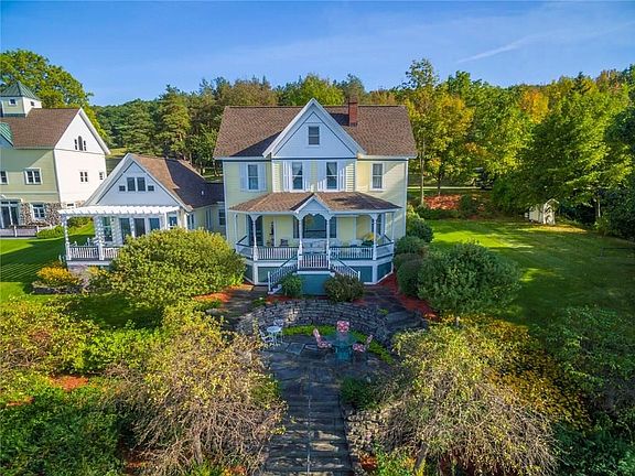 This iconic & rare property on Canandaigua Lake has been admired by many as a showcase of ultimate lake living... Featuring approximately 263' of shale beach waterfront with pristine waters & 9.6 acres for privacy with a permanent dock, boat house, exquisite landscaping & panoramic lake views of Bare Hill! Updated 2004 Lake Compound features 1. Main House 2. Guest Carriage House 3. Outbuilding. MAIN HOUSE is a combination of history built in 1887 with pine floors & cucumber trim/molding with upgrades like a designer kitchen & spa bathroom! Amazing wrap around porches & patios! GUEST CARRIAGE HOUSE features a lower level apartment with deck access, 3 car garage & 2nd floor activity room! OUTBUILDING BARN- main section 55' x 18'- 16' ceilings, two other sections- 40' x 12'. JUST OUTSTANDING!